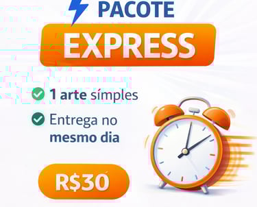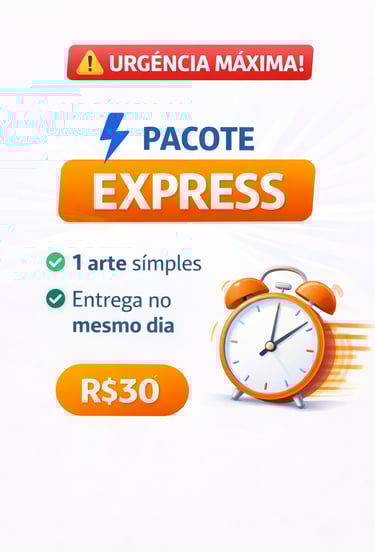 O Pacote Arte Express é ideal para quem precisa de uma arte simples, direta e funcional. Indicado para divulgações rápidas, avisos, promoções ou posts urgentes.
