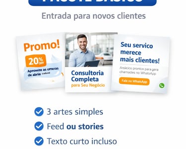 O Pacote Básico foi criado para quem quer manter uma comunicação visual organizada e profissional nas redes sociais, sem complexidade.