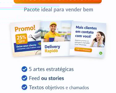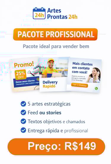 O Pacote Profissional entrega artes com visual mais elaborado, pensadas para fortalecer a imagem da marca e aumentar o engajamento.